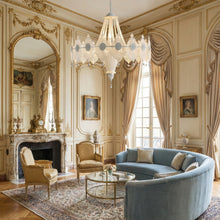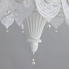 This chandelier is a masterpiece of romantic design, featuring lace-like wrought iron in a soft, creamy white hue. At its center is a circle of classic embossed medallions, reminiscent of the opulent grandeur of 18th-century European palaces. Adorned with delicate pearl accents, this fixture softens the ambiance of any space, emitting a warm and inviting glow. The robust wrought iron craftsmanship perfectly complements the gentle luster of the pearls, creating an aesthetic of "soft luxury"—it is not merely a lighting fixture, but a suspended work of art.