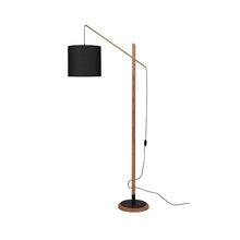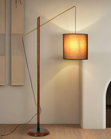 Introduce the Archer Floor Lamp to your space. This modern lamp features a sleek black metal base, walnut neck, and fabric shade for a stylish touch. Adjust the light to the perfect angle, illuminating any area with precision. Enhance your living space with this functional and chic floor lamp.