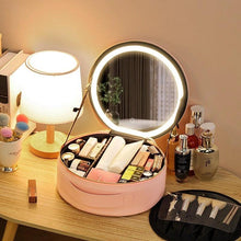 Round Smart LED Makeup Bag with Mirror Lights - Women Beauty Bag