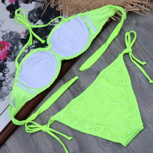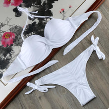 Bikini Solid Strappy Bandage Bikinis Set White Push Up Bikini Swimwear Swimsuit Bathing Suit Women's Ribbed Tie Bikini Adjustable Lace Up Bottom String Women Swimsuit