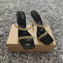 Summer Women Sandals Square Toe Ladies Heel Clear Transparent High Heels Slippers Fashion Chain Woman Open Toe Slip On Dress Luxury Party Backless Slides High Heels Slipper
