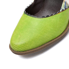 Women's Spring Heels Dress Shoes Party Round Toe Elegant Cowhide Loafer Green Pumps