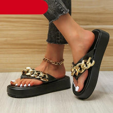 Women Summer Newest Fashion Chain Flip-flops Sandal Slippers Shoes Woman Flat Platform Sandals Casual Flat Slippers Slides Shoes Flat Sandals Casual Summer Shoes