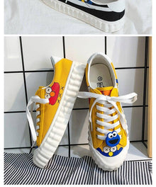 Funny Yellow Cartoon Design Sneakers Women Casual Fashion New Flat Vulcanized Sneakers Lace Up Canvas Shoes Men Comfortable Canvas Flats Summer Fashion Lace-up Sneakers