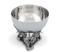 Inspired by an ancient Hindu belief of the world being supported by elephants, the Stainless Nut Bowl - Pewter Elephant Base from our Safari Collection is an absolute marvel. The bowl, crafted from stainless steel, comfortably rests on the raised trunks of 3 intricately detailed, pure pewter elephants. The perfectly sized bowl not only elevates any room's aesthetics but also functionally serves up treats or holds trinkets in elegant style. An embodiment of an exotic realm, it is an ideal unique gift for the animal lovers seeking luxury and sophistication.