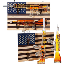 2 Gun Whiskey Decanters Set AR15 and AK47 Gun Decanter 1000ml American Flag Wall Rack by The Wine Savant - Veteran Gifts, Gun Lover Gifts, Tik Tok Gun Decanter, Military Gifts