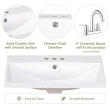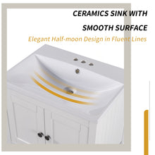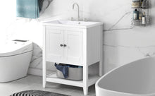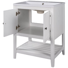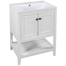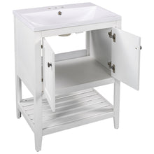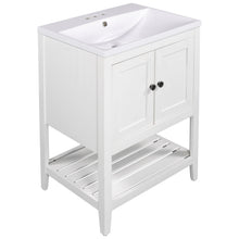 24" White Modern Sleek Bathroom Vanity Elegant Ceramic Sink with Solid Wood Frame Open Style Shelf