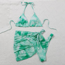 3 Piece Women Bikini Modern Swimsuit Women High Cut Suit Halter Swimwear Women's Bikini Swimsuits With Wrap Skirt Lace Up Pieces Strings High Cut Bikini Set Bathing Suits Female Triangle Backless Bathing Suit