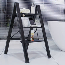 3 Step Ladder Aluminum Light Folding Step Bench Wide Non slip Pedal 300 lb Capacity Home Office Portable Ladder black