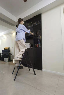 [Space saving] The 3-step ladder is only 2 inches wide when folded, saving your space. Easy to carry, suitable for indoor or outdoor use. It can be folded tightly to fit in narrow places. When idle, it can lean against the wall or corner, can be placed under the bed or cupboard and stored