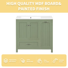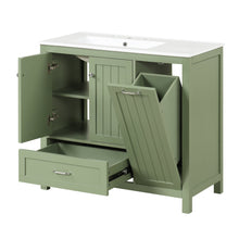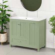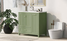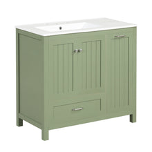 36 inch bathroom vanity with sink, one double door cabinet one large drawer and one flip drawer solid wood and MDF board, green