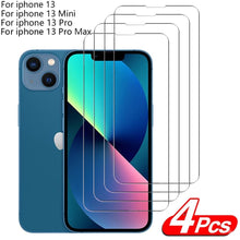 4Pcs Protective glass on For iPhone 14 13 12 11 Pro Max XS XR Mini screen protector Tempered glass For iphone 7 8 14 Plus glass Clear Screen Protector Guard Anti Scratch Screen Protector For iPhone