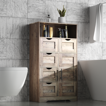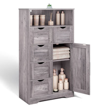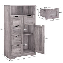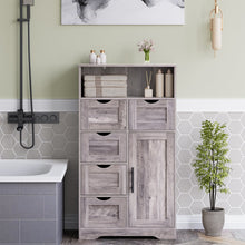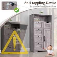 5 Drawers Storage Cabinet with Adjustable Shelves, Bathroom Cabinet with Doors, Floor Cabinet for Living Room Grey