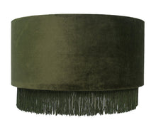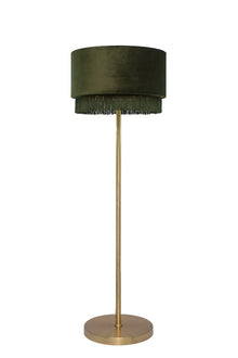 Made with thick, quality velvet material with matte gold inner lining  Decorated with shimmering dark green fringe Luxury design to compliment any table or floor lamp Dimensions: Diameter (35cm) Body...