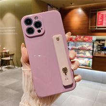 Adjustable Wrist Strap Stand Holder Case with Camera Protection Cute Solid Color Silicone Phone Case Phone Case For iPhone 13 14 Pro Max 12 11 XS Max XR 7 8 Plus 13Pro Soft Silicone Candy Color Back Cover