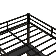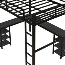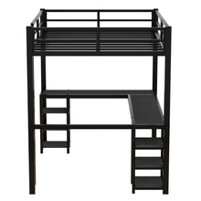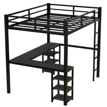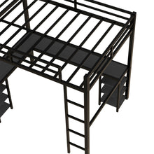 All metal loft bed with desk and shelf, loft bed with ladder and guardrail, black with black desk
