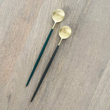 This set includes 4 long spoons from our popular Altin flatware set. Use for serving ice cream or stirring drinks. Choose from forest green or black stems.