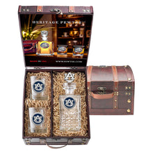 Auburn University Heritage Decanter with 3D Top and 2 Glasses with Chest Box