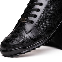 The BARI is our sporty genuine lizard fashion sneaker boasting a unique patchwork design, eye-catching rubber sole, and a hand painted finish. Dress these up with your favorite slacks for a sporty dress look or pair them with jeans or shorts for a casual but clean look.