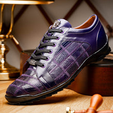 The BARI is our sporty genuine lizard fashion sneaker boasting a unique patchwork design, eye-catching rubber sole, and a hand painted finish. Dress these up with your favorite slacks for a sporty dress look or pair them with jeans or shorts for a casual but clean look.