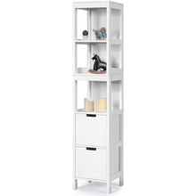 Bathroom Cabinet Tower with 2 Storage Drawers and 3 Shelves in White Wood Finish