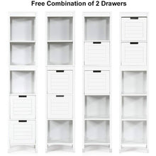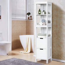 - Bathroom Cabinet Tower with 2 Storage Drawers and 3 Shelves in White Wood Finish