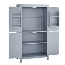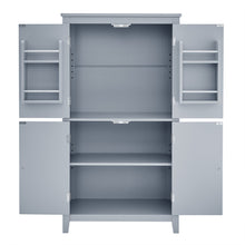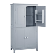 Bathroom floor storage cabinet, bathroom storage cabinet, 4-door independent cabinet, adjustable shelf, adaptive shelf, gray