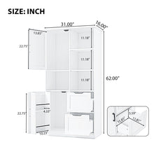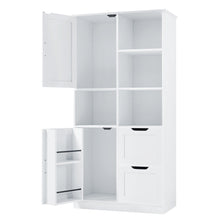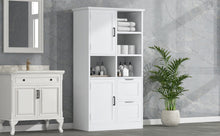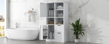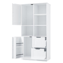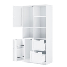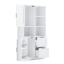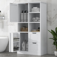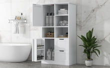Bathroom storage cabinet with doors and drawers, multiple storage spaces, independent, open adjustable shelves, white