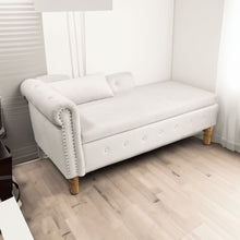 Beige Chaise Lounge Indoor Velvet Lounge Chair for Bedroom with Storage & Pillow Modern Upholstered Rolled Arm Chase Lounge