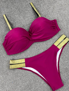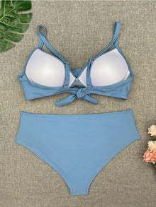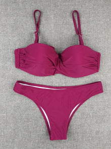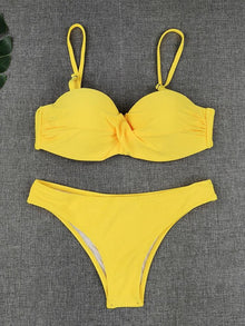 Bikini Sets Solid Color Swimsuit Mid-Waist Gather Cup Bikinis Women Swimwear Female Bathing Suits Beach wear Two Piece Swimsuits Triangle Bikini swimsuits for Women