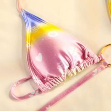 - COMFORTABLE MATERIAL- Made of soft stretch high quality fabric,Skin-friendly and soft.Sliding triangle bikini top with micro thong bikini bottoms,show a fun and sweet look.