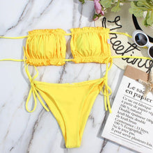 Bikini Women Swimsuit Female Low Waist Swimwear Women Beach Mini Thong Bikini Set Bathing Suit Women Thong Swimsuits Strapless 2 Piece Bikini String Tie Ruffle Brazilian Bathing Suit
