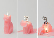 - BURNS NEATLY- An adorable cat shaped candle uncovers the untamed creature inside her, a metal skeleton with a flame blazing through her eyes!