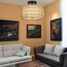Boho Light Fixtures Ceiling Mount, Rattan Semi Flush Mount Ceiling Light, Farmhouse Light Fixtures with Fabric Shades