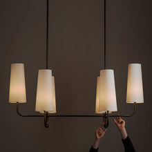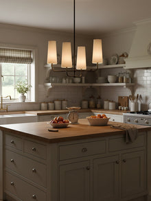 This chandelier will add a captivating ambiance to your home, perfectly blending classic charm with modern sophistication. The lamp features a fabric shade that diffuses a soft and beautiful light....