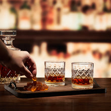 - The set also includes two crystal lowball whiskey glasses, designed for enjoying bourbon, whiskey, or scotch in style. Crafted from high-quality crystal, these glasses have a sleek, elegant design that enhances the experience of sipping your favorite spirits. Their classic lowball shape makes them perfect for neat pours or whiskey on the rocks, allowing you to savor the full flavor and aroma of your drink.