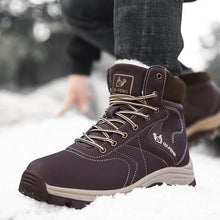 Brown Winter Mens Snow Boots Warm Plush Boots Waterproof Leather Ankle Boots Fashion Outdoor Non-slip Men's Hiking Boots Winter Ankle Snow Hiking Boots Warm Water Resistant Sport Shoes