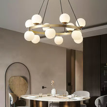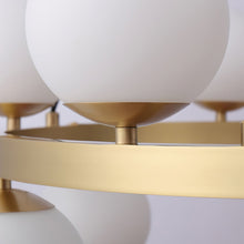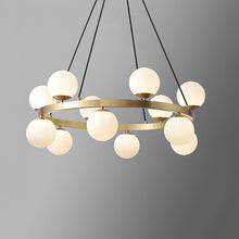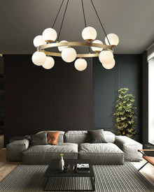 The Camille Chandelier from mooiehome is a striking blend of sculptural elegance and modern sophistication. Crafted from lustrous brass and opal glass, this chandelier features a bold circular frame adorned...