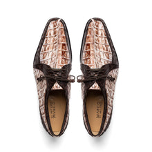 The CARIBE is our stunning genuine hornback caiman crocodile dress derby's featuring a 3D crocodile scale toe box, tasseled laces, stitched outsole, and a polished hand finish that makes the crocodile texture pop. Dress these up with your favorite jeans or slacks for an out-of-this-world look.