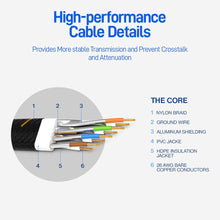 - SHIELDED ETHERNET CABLE: The foil screened each individual twisted pairs (STP) combine with overall copper shielded RJ45 modular connector and 50U gold-plated contact pin, confidently protect the signal transmission quality from external Electro-Magnetic Interference (EMI)