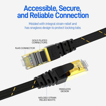 - FLAT CABLE UNIQUE DESIGN: Black code with gold line, suitable for use in different situations and are easy to be identify. Flat cable design for easy and convenient house wiring. The strain relief prevent the cable from breaking at narrow corner