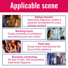 Our Charm Perfume contains Musk ketone, santalum album extract, citrus aurantifolia fruit extract. It can help you attract the opposite sex, increase your romance and increase your confidence. Its use method is very simple: take off the cap, shake evenly, and apply the ball behind the ears, neck, wrist and other parts. It can boost your confidence, make it easier to show your charm, and taste lasting.