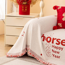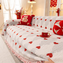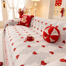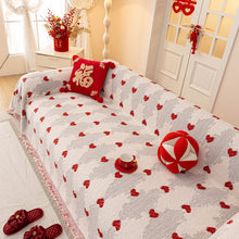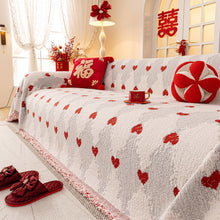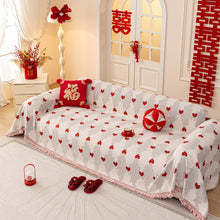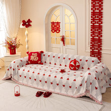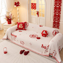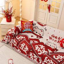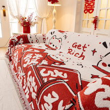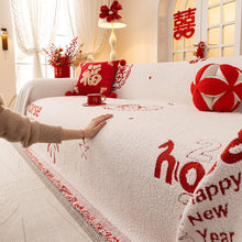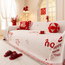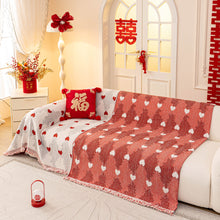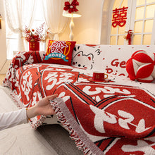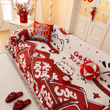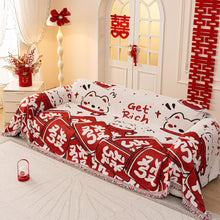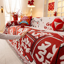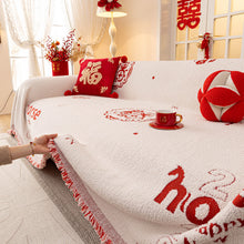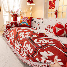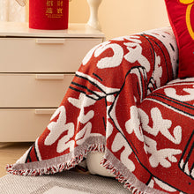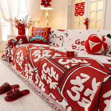 Chinese New Year Sofa Throw Cover Blanket, Decor Festive Red Fu Pattern Couch Cover