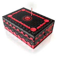 • Decorative black mesh with red roses and polka-dot accents