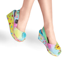Hot Chocolate Design Chocolaticas® Picnic Women's Sandal Printed fabric upper and wedge. Fabric inner. Synthetic rigid wedge (not flexible) Non-marking rubber sole Cushioned inner sole (no arch support) Accessories not removable...