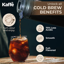 - TOP QUALITY MATERIAL. Kaffe's cold brew coffee maker is designed to enhance your coffee or tea brewing experience. Our cold brew pitcher is made from non-toxic BPA-Free Tritan glass with heavy-duty shatter-resistance; Its Ergonomic handle and easy-adjust lid make our brewer easy to handle.