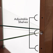 ADJUSTABLE SHELVES: Within the glass curio cabinet you'll find 4 tempered glass shelves which can be adjusted in height, and 2 fixed wood shelves. There is unlimited flexibility when it comes to fitting your collectables or dishes in this curio cabinet! Each shelf has a weight capacity of 15 lbs.