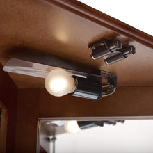 LIGHTED CORNER CURIO CABINET: Add a dramatic touch, and highlight your favorite collectables day or night by turning on the internal lighting feature. The lighting kit uses a standard E26 light bulb (light bulb is not included).
