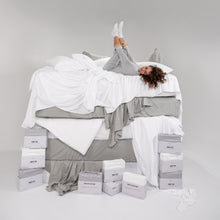 Includes (1) Fitted Sheet, (1) Flat Sheet, (2) Pillowcases, and a complimentary 30-pack Laundry Pods (My Way) and Room Spray (My Way).