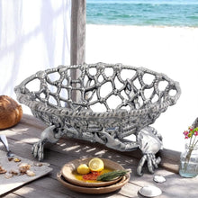 Bring a touch of seaside sophistication to your home with our Remarkable Crab and Net design gift. Ideal for homemakers and ocean enthusiasts, this exquisite Fruit Basket with Crab and Net design is perfect for stylish summer gatherings. Each piece is intricately handcrafted, showcasing the craftsmanship and attention to detail Arthur Court is renowned for. The design is versatile, effortlessly transitioning from a centrepiece at your beach house to a stylish accessory for every day use. Notably, the Luxury Crab and Net Fruit Basket makes for an outstanding entertainment set piece in beach house settings. Dimensions: Basket - 12"W x 3.5"H; Crab - 8"L x 8"W.